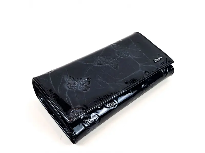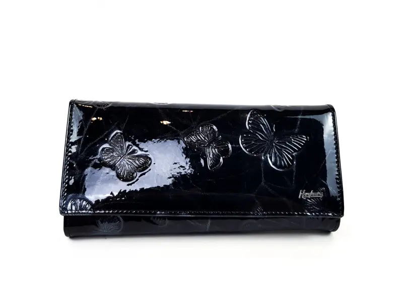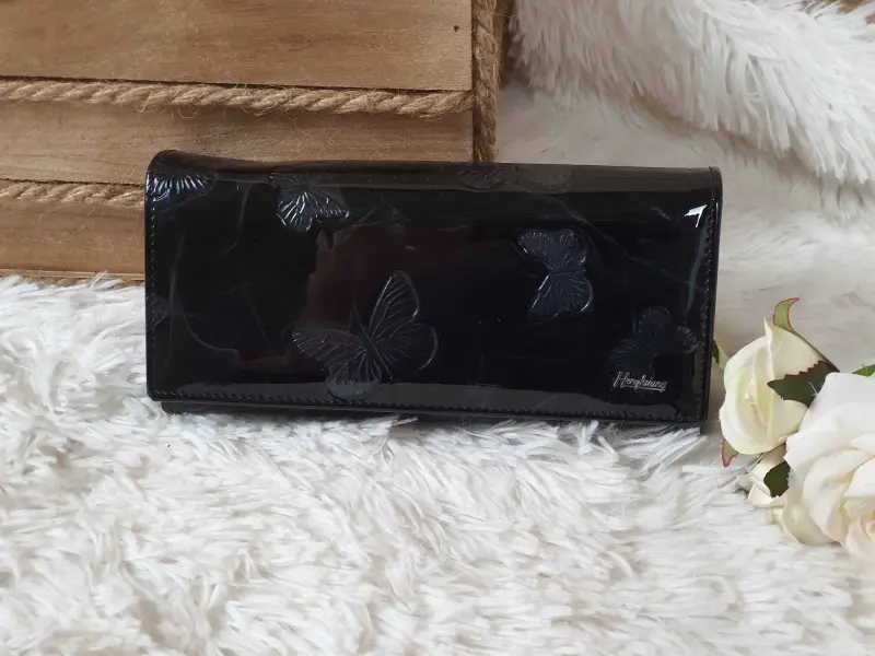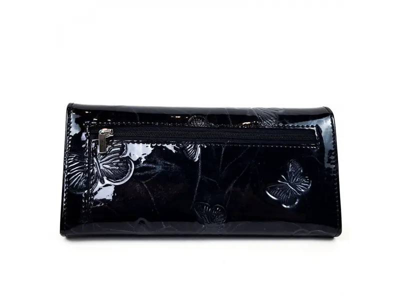 Μαύρο λουστρίνι πορτοφόλι - πεταλούδες | Γυναικείες τσάντες (ePazar.bg)
