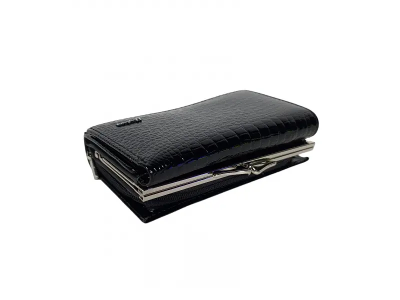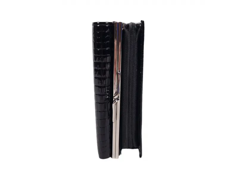 Μαύρο μεσαίου μεγέθους λουστρίνι πορτοφόλι. Κομψό γυναικείο πορτοφόλι από γνήσιο δέρμα και λουστρίνι. Άνετο μαύρο γυναικείο πορτοφόλι με δύο θήκες για κέρματα - κλιπ και φερμουάρ από το ηλεκτρονικό κατάστημα ePazar.bg