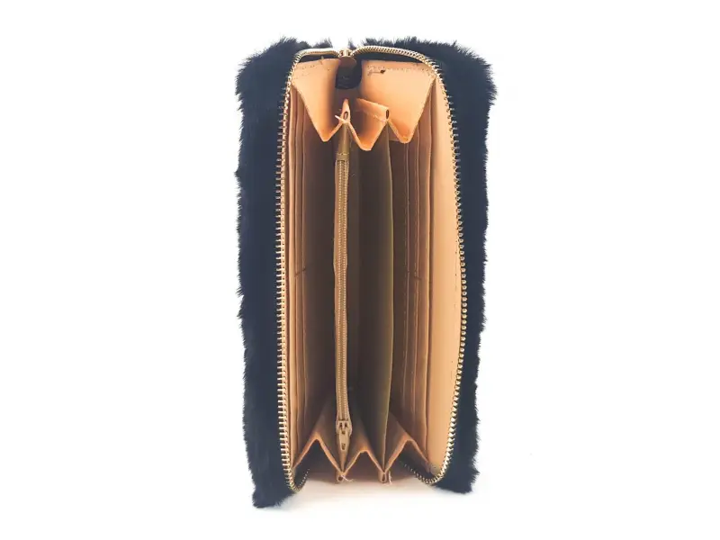 Μαύρο πορτοφόλι με χνούδι. Γυναικείο πορτοφόλι από το ηλεκτρονικό κατάστημα ePazar.bg. Ενδιαφέρον γυναικείο πορτοφόλι με φερμουάρ σε χρυσό χρώμα. Μαύρο βελούδινο πορτοφόλι.