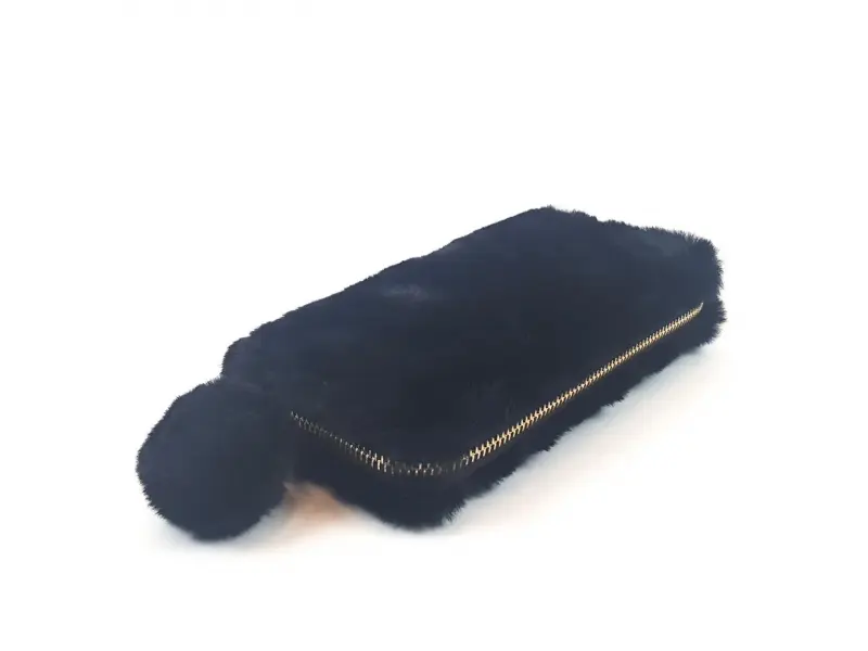 Μαύρο πορτοφόλι με χνούδι