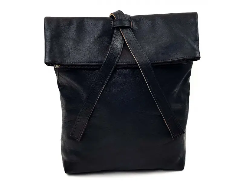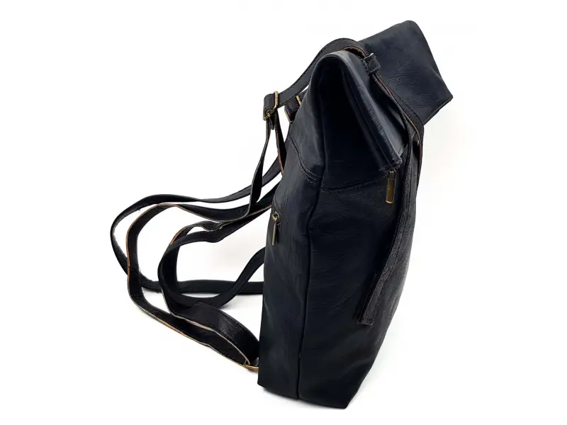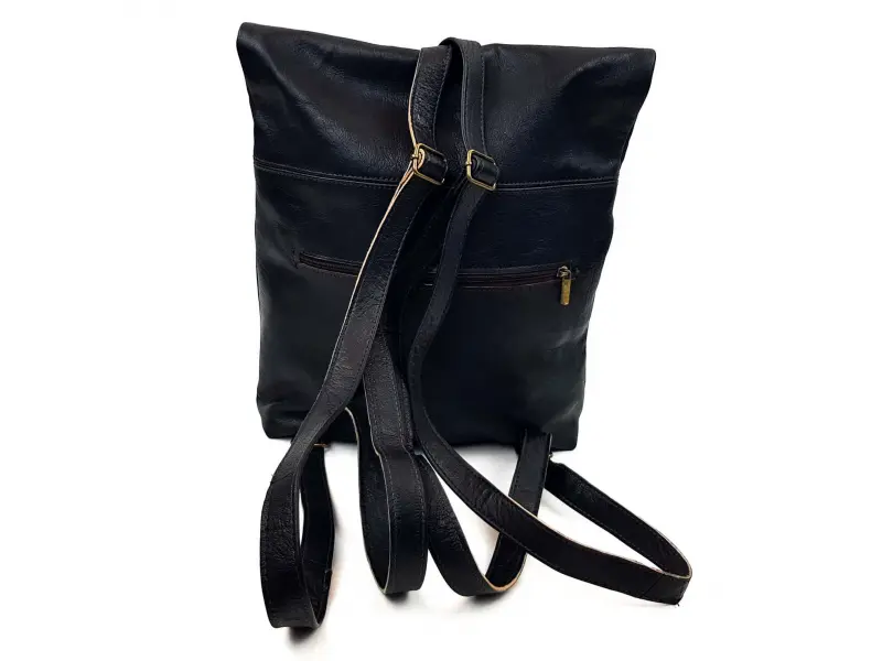 Μαύρο σακίδιο πλάτης - Μαρόκο με μπαλώματα. Άνετο γυναικείο σακίδιο πλάτης από γνήσιο δέρμα, εισαγωγής από το Μαρόκο. Μαύρο σακίδιο πλάτης, χειροποίητο, κλείσιμο με μπαλώματα - ePazar.bg