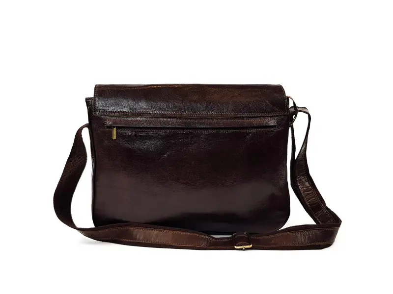 Ανδρική τσάντα υψηλής ποιότητας από 100% φυσικό γνήσιο δέρμα εισαγωγής από το Μαρόκο. Μεγάλη ανδρική τσάντα με κλείσιμο με καπάκι, μία μεγάλη θήκη με φερμουάρ, εσωτερική δερμάτινη επένδυση, χώρο για κάρτες και έγγραφα, χώρο για στυλό και μολύβια. Ποιοτική ανδρική τσάντα τύπου ταχυδρόμου με πίσω τσέπη και ρυθμιζόμενα λουράκια από δέρμα και ανθεκτικό ύφασμα.