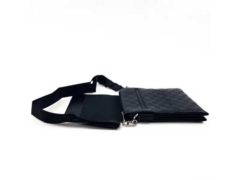 Κομψή ανδρική τσάντα από οικολογικό δέρμα με τετράγωνα, ρυθμιζόμενο μακρύ λουράκι ώμου από πολυεστέρα. Μεσαία ανδρική τσάντα από οικολογικό δέρμα με μαγνητικό κλείσιμο, πίσω τσέπη με φερμουάρ και μεγάλη θήκη με φερμουάρ με εσωτερικά χωρίσματα.