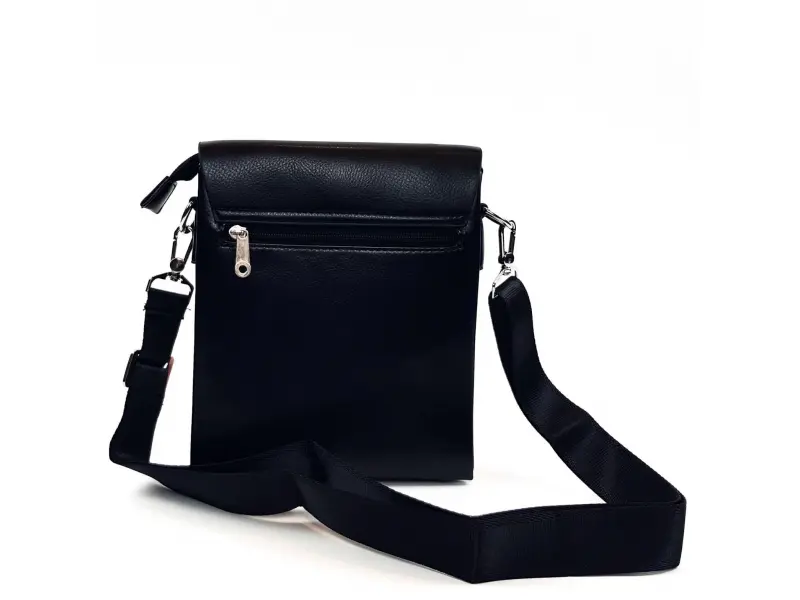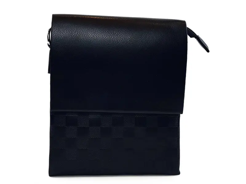 Μεσαία ανδρική τσάντα τετράγωνη - οικολογικό δέρμα. Κομψή ανδρική τσάντα από οικολογικό δέρμα με τετράγωνα. Ανδρική μαύρη τσάντα με μικρό καπάκι και ποιοτικό οικολογικό δέρμα από το ηλεκτρονικό κατάστημα ePazar.bg