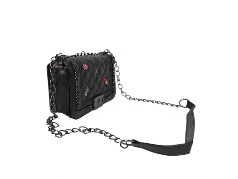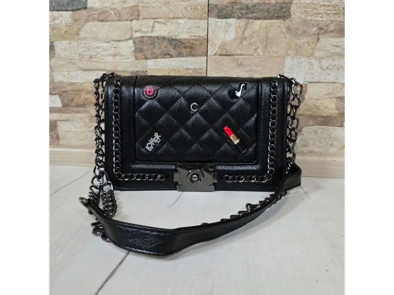 Νέο μοντέλο τσάντας - Μικρή τσάντα χειρός από οικολογικό δέρμα. - Μία κύρια θήκη με μηχανισμό κλεισίματος. - Μικρή εσωτερική τσέπη με φερμουάρ. - Μακριά λαβή τύπου αλυσίδας σε συνδυασμό με οικολογικό δέρμα.