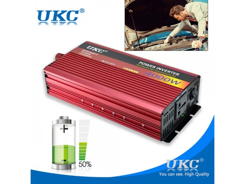 Ένας ισχυρός μετατροπέας UKC 4000W 24V 220V μετατρέπει την τάση από την μπαταρία. Ο μετατροπέας τάσης είναι κατάλληλος για αυτοκίνητο, τροχόσπιτο, τροχόσπιτο και είναι μια πολύ αξιόπιστη συσκευή, έχει προστασία από υπερφόρτωση, βραχυκύκλωμα και υπερθέρμανση.