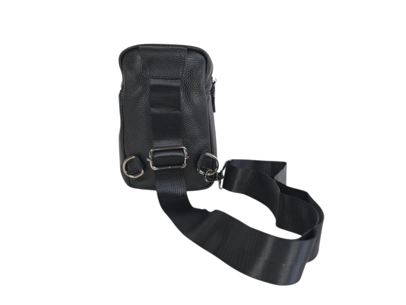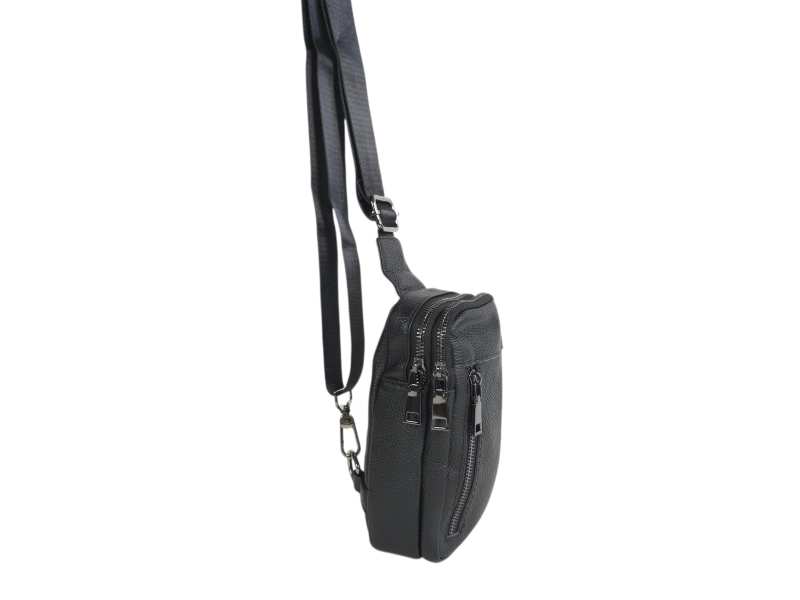 Ανδρική τσάντα από γνήσιο δέρμα σε μαύρο χρώμα. Μια τσάντα χιαστί που μπορεί να φορεθεί και στην πλάτη σαν σακίδιο πλάτης. Δερμάτινη ανδρική τσάντα με βολικές θήκες και ανθεκτικά φερμουάρ με άνετο λουράκι ώμου.