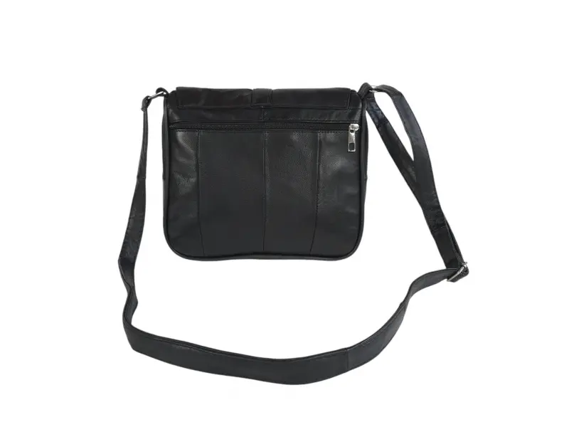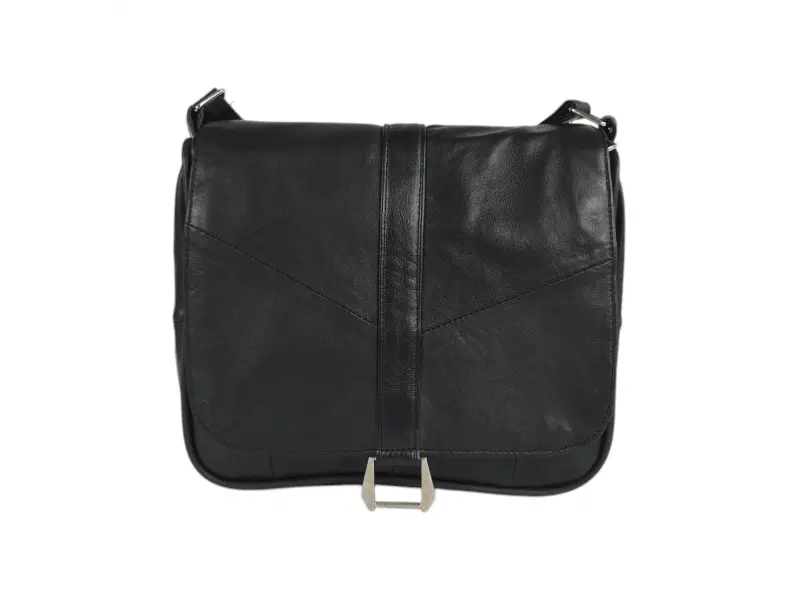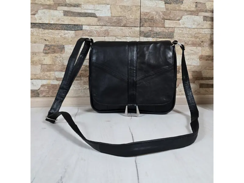 Μαύρη τσάντα χειρός από γνήσιο δέρμα. Μικρή τσάντα χειρός με βολικές θήκες με φερμουάρ και μακριά ρυθμιζόμενη λαβή. Νέο μοντέλο τσάντας χειρός από γνήσιο δέρμα.