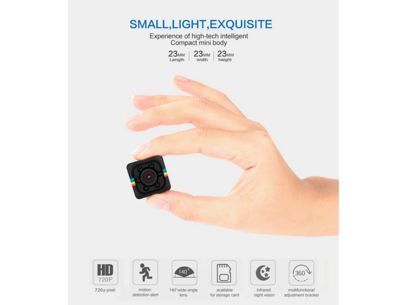 Αυτή η μίνι κάμερα είναι η ιδανική λύση για διακριτική και βολική παρακολούθηση σε διάφορες καταστάσεις, προσφέροντας υψηλή ανάλυση και δυνατότητα εγγραφής σε χαμηλό φωτισμό. Χάρη στο μικρό μέγεθος της, η κάμερα μπορεί να τοποθετηθεί σε δυσπρόσιτα σημεία, όπως σε ρούχα, κράνος, αυτοκίνητο ή άλλα κινούμενα και σταθερά αντικείμενα.