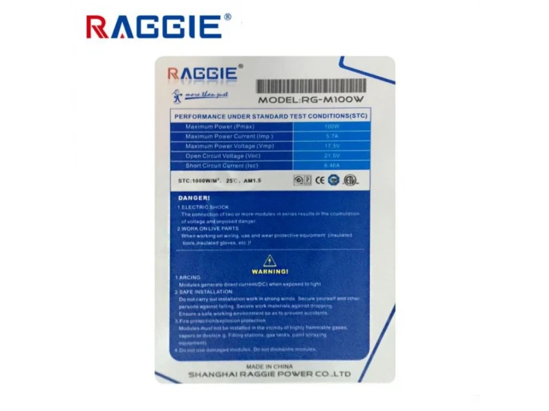 Ανακαλύψτε τον μονοκρυσταλλικό φωτοβολταϊκό ηλιακό συλλέκτη 100W RAGGIE, ιδανικό για μέγιστη απόδοση και βιώσιμη τροφοδοσία. Με διαστάσεις 920x575x30 χιλ. και έξοδο 12V, αυτός ο ηλιακός συλλέκτης είναι τέλειος για κάμπινγκ, οικιακή χρήση και έργα ανανεώσιμης ενέργειας.