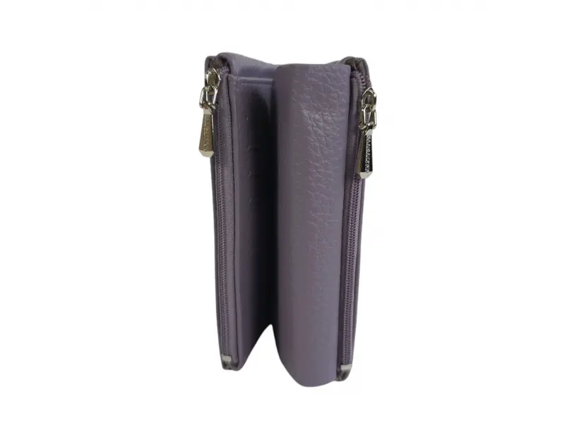 Όμορφο γυναικείο πορτοφόλι με ενδιαφέρον σχέδιο από ποιοτικό τεχνητό δέρμα. Πρακτικό γυναικείο πορτοφόλι με βολικές θήκες για χαρτονομίσματα, κάρτες και κέρματα. Μωβ γυναικείο πορτοφόλι με μαγνητικό κλείσιμο.