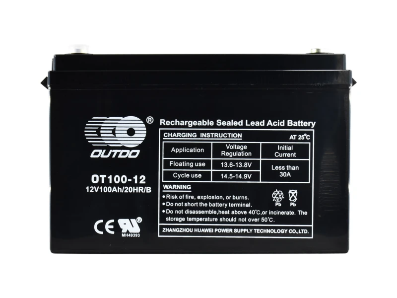 Βρίσκουν εφαρμογή σε UPS - εφεδρική ισχύς, φωτισμός έκτακτης ανάγκης, βιομηχανία, ασφάλεια, ιατρική, ναυτιλία, στρατιωτικά ηλεκτρονικά, τηλεπικοινωνίες για φορητά μη πτητικά ηλεκτρονικά, ηλιακά πάνελ, βυθομετρητές και πολλά άλλα. Μάρκα: OUTDO Χωρητικότητα: 100 [Ah] Ονομαστική τάση: 12 [VDC] Συνολικές διαστάσεις: - 215 / 330 / 170 mm Εσωτερική αντίσταση: 4 [mohm] Τερματικά: βιδωτά τερματικά Μοντέλο: OT100-12 Τύπος μπαταρίας: πρόσφυση Τύπος μπαταρίας: μόλυβδος-οξύ