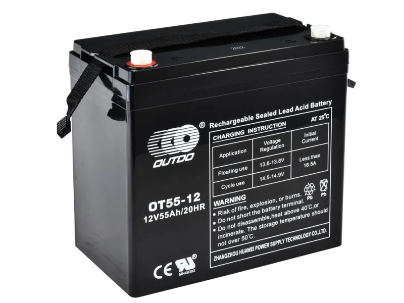 Βρίσκουν εφαρμογή σε UPS - εφεδρική ισχύς, φωτισμός έκτακτης ανάγκης, βιομηχανία, ασφάλεια, ιατρικά, ναυτικά, στρατιωτικά ηλεκτρονικά, τηλεπικοινωνίες για φορητά μη πτητικά ηλεκτρονικά, ηλιακούς συλλέκτες, σόναρ και πολλά άλλα. Μάρκα: OUTDO Χωρητικότητα: 55 [Ah] Ονομαστική τάση: 12 [VDC] Συνολικές διαστάσεις: 210 / 227 / 135 mm Εσωτερική αντίσταση: 16 [mohm] Τερματικά: βιδωτά τερματικά Μοντέλο: OT55-12 Τύπος μπαταρίας: πρόσφυση Τύπος μπαταρίας: μόλυβδος-οξύ