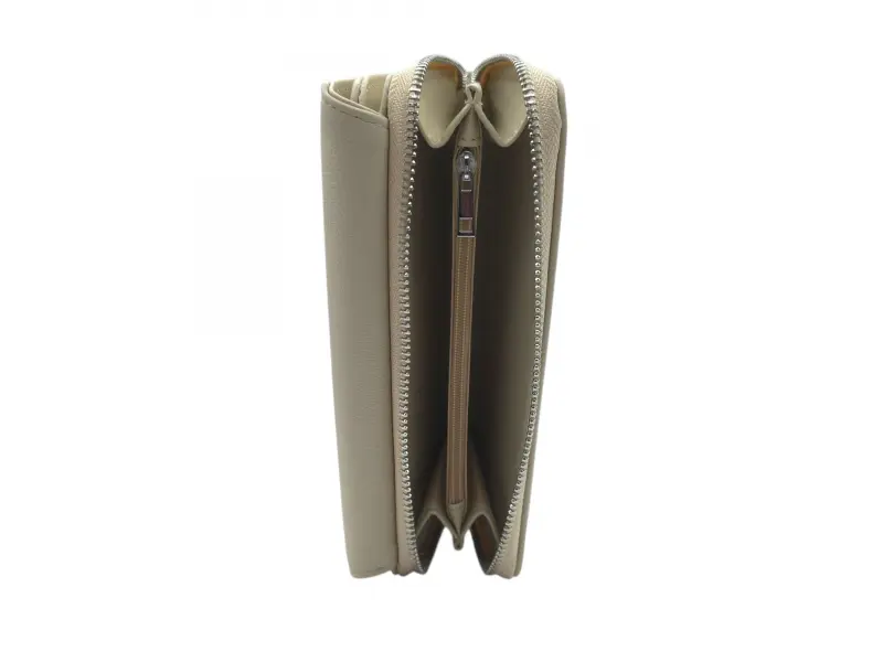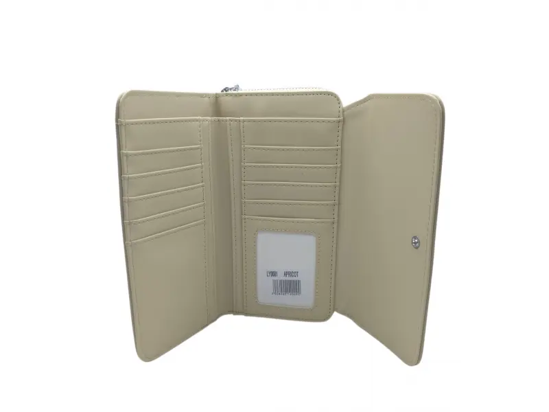 Μπεζ γυναικεία τσάντα με βολικές θήκες - Γυναικείο πορτοφόλι από οικολογικό δέρμα. - Κλείσιμο με κουμπί κλικ. - Θήκες για κάρτες. - Θήκη για χαρτονομίσματα. - Τσέπη για κέρματα με φερμουάρ.