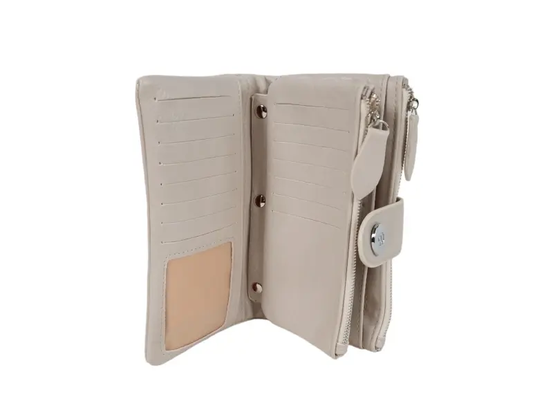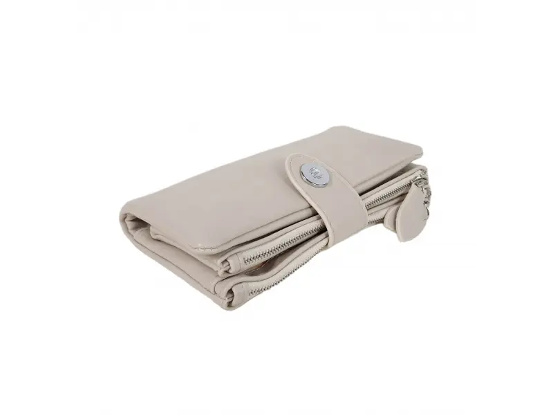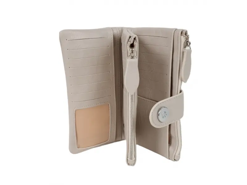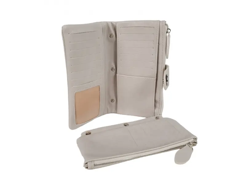 Όμορφη γυναικεία τσάντα σε μπεζ χρώμα - Γυναικείο πορτοφόλι από οικολογικό δέρμα. Κλείσιμο με φερμουάρ. - Κλείσιμο με κουμπί κλικ. - Θήκες για κάρτες. - Θήκη για χαρτονομίσματα. - Τσέπη για κέρματα με φερμουάρ.