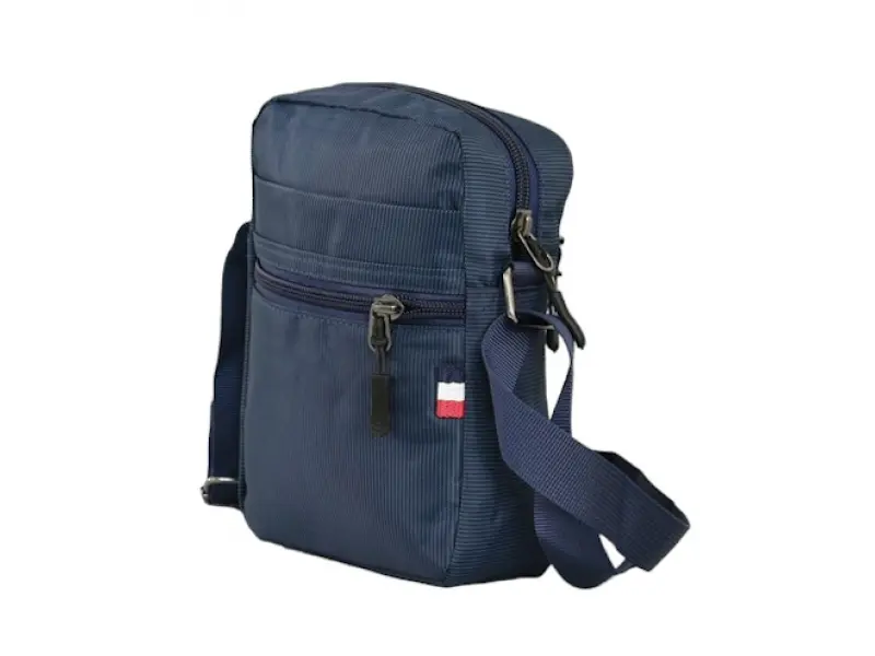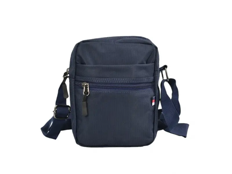 Μικρή αθλητική τσάντα ώμου - Ανδρική τσάντα από ποιοτικό ύφασμα. - Μία κύρια θήκη με φερμουάρ. Μπροστινή τσέπη με φερμουάρ. - Μπροστινή τσέπη χωρίς φερμουάρ. - Πίσω τσέπη με φερμουάρ. Εσωτερική τσέπη με φερμουάρ. - Μακριά ρυθμιζόμενη λαβή.