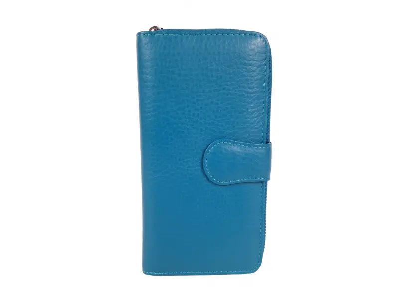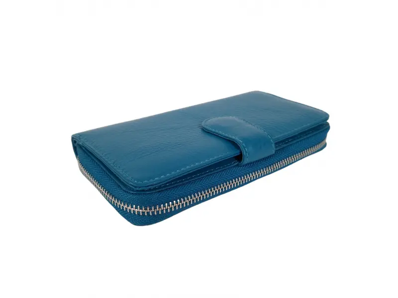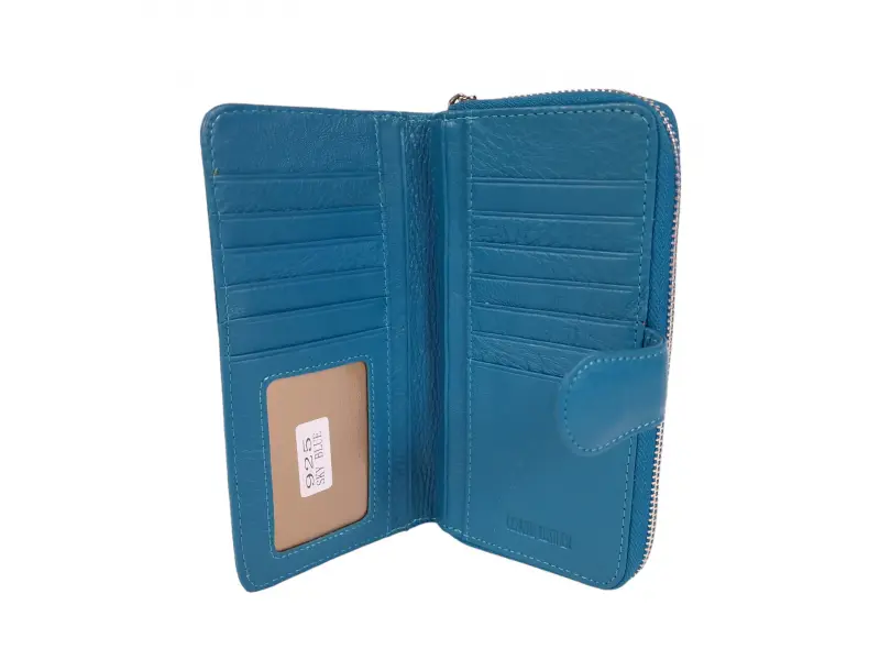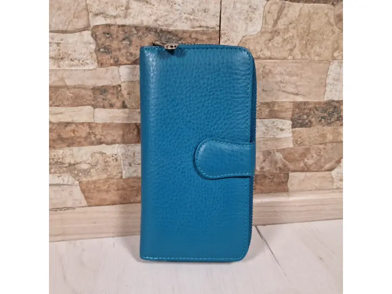 Μπλε μεγάλο πορτοφόλι με πολλές υποδοχές καρτών - Γυναικεία τσάντα από γνήσιο δέρμα. Κλείσιμο με φερμουάρ και κουμπί. - Πολλές θήκες για κάρτες. - Θέσεις για χαρτονομίσματα. - Εσωτερική τσέπη για κέρματα με φερμουάρ.