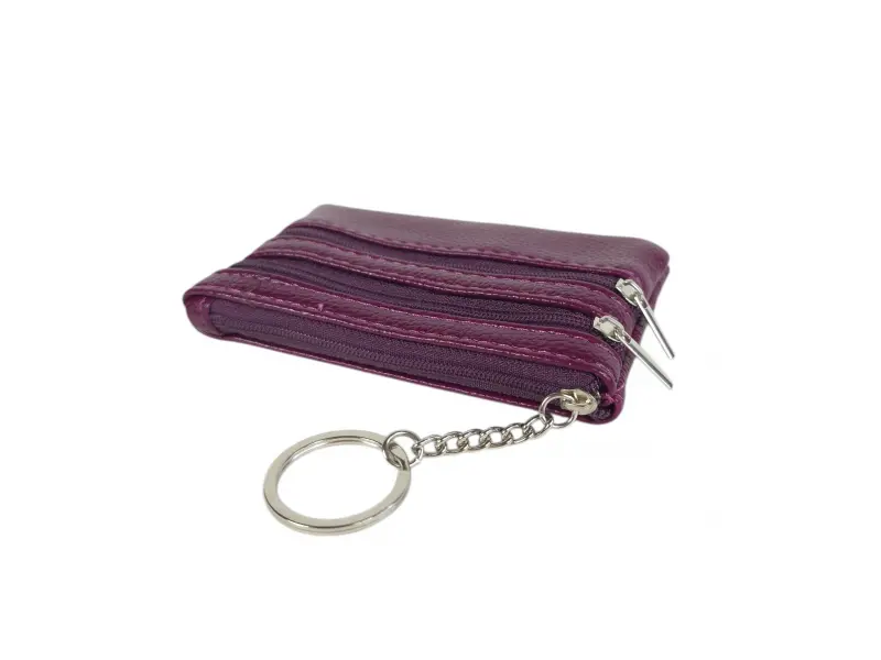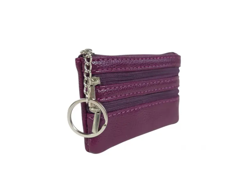 Δερμάτινο μπρελόκ σε βιολετί χρώμα - Τσαντάκι για μπρελόκ από γνήσιο δέρμα. - Θήκη για χαρτονομίσματα. - Δύο θήκες για κέρματα. - Μπρελόκ για κλειδιά.