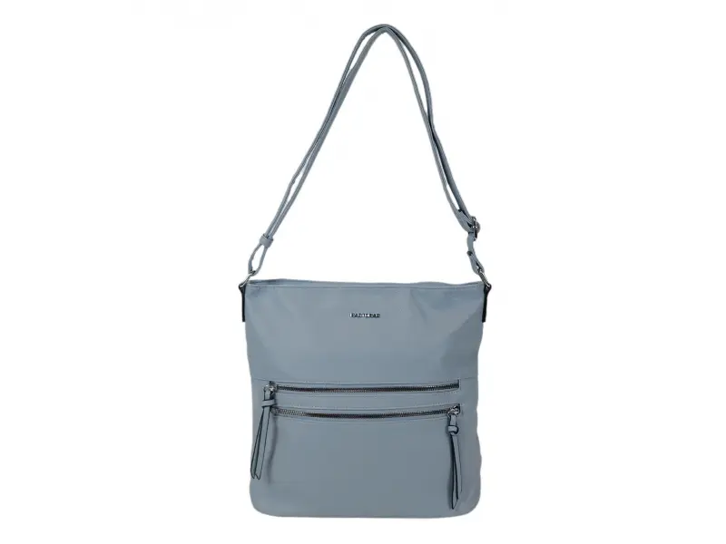 Άνετη γυναικεία τσάντα τύπου τσάντας από ποιοτικό συνθετικό δέρμα. Μπλε τσάντα με μία κύρια θήκη με φερμουάρ, μικρή εσωτερική τσέπη με φερμουάρ, χώρισμα με φερμουάρ, θήκη για τηλέφωνο ή έγγραφα, δύο μπροστινές και μία πίσω τσέπη με φερμουάρ. Καθημερινή τσάντα με άνετη μακριά ρυθμιζόμενη λαβή.