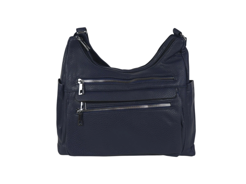 Μεσαία τσάντα χειρός - Τσάντα χειρός από οικολογικό δέρμα. Δύο κύριες θήκες με φερμουάρ - Μικρή εσωτερική τσέπη με φερμουάρ. - Τρεις μπροστινές τσέπες με φερμουάρ. - Πίσω τσέπη με φερμουάρ. Δύο πλαϊνές τσέπες. - Μακριά ρυθμιζόμενη λαβή.