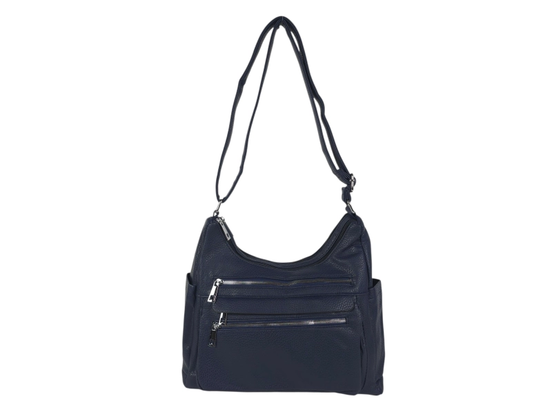 Μεσαίου μεγέθους τσάντα χειρός από ποιοτικό οικολογικό δέρμα. Μπλε τσάντα χειρός με πολλές θήκες και ρυθμιζόμενη μακριά λαβή. Καθημερινή τσάντα χειρός με ενδιαφέρον σχέδιο.