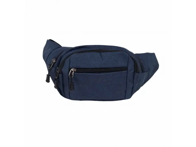 Σκούρο μπλε τσάντα χιαστί - Υφασμάτινη τσάντα χιαστί. - Μία κύρια θήκη με φερμουάρ. - Δύο μπροστινές τσέπες με φερμουάρ. - Πίσω τσέπη με φερμουάρ. - Ρυθμιζόμενη ζώνη.