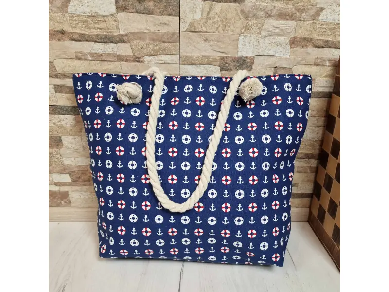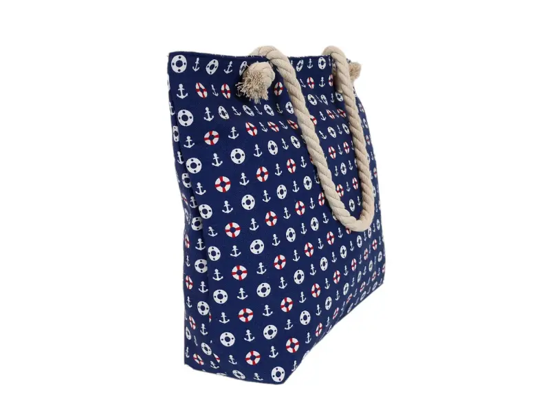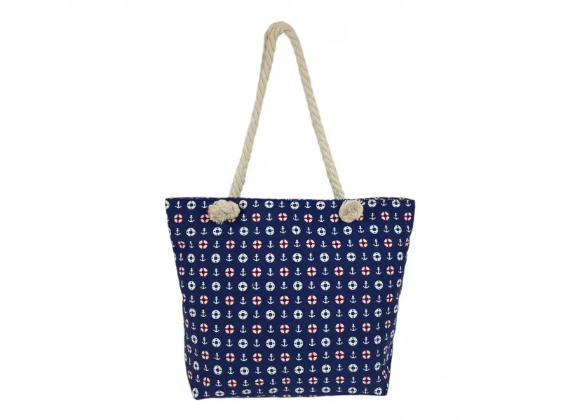 Μπλε τσάντα θαλάσσης με φερμουάρ Άνετη τσάντα θαλάσσης με μία θήκη με φερμουάρ και στιβαρές λαβές από σχοινί.