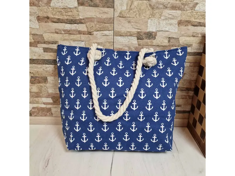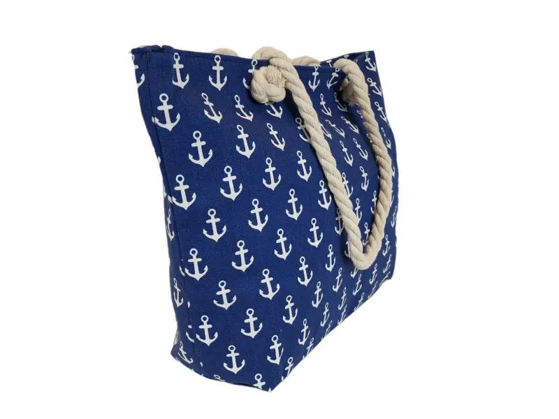 Άνετη τσάντα θαλάσσης με άγκυρες, μία θήκη με φερμουάρ και στιβαρές λαβές από σχοινί.