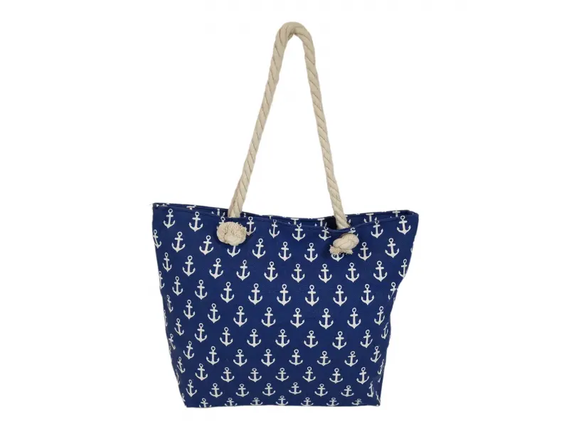 Τσάντα θαλάσσης σε μπλε χρώμα Άνετη τσάντα θαλάσσης με άγκυρες, μία θήκη με φερμουάρ και στιβαρές λαβές από σχοινί.
