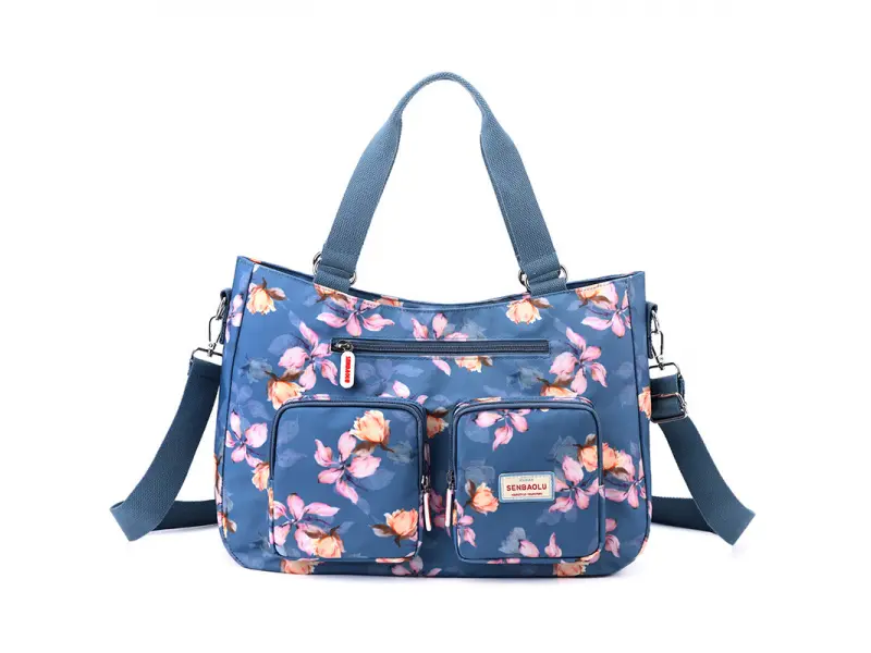 Τσάντα χειρός με βολικές θήκες - Γυναικεία τσάντα χειρός από ύφασμα. - Μία κύρια θήκη με φερμουάρ. - Τρεις μπροστινές τσέπες με φερμουάρ. Εσωτερική τσέπη με φερμουάρ. - Θήκη για τηλέφωνο και έγγραφα. - Άνετες λαβές για μεταφορά στο χέρι. - Ρυθμιζόμενη, μακριά λαβή.