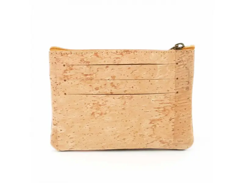 Γυναικείο πορτοφόλι για κέρματα από φελλό. Πορτοφόλι για κέρματα από οικολογικό υλικό με δύο θήκες που κλείνουν με φερμουάρ, με χώρο για χαρτονομίσματα και κέρματα, θήκες για κάρτες και έγγραφα.