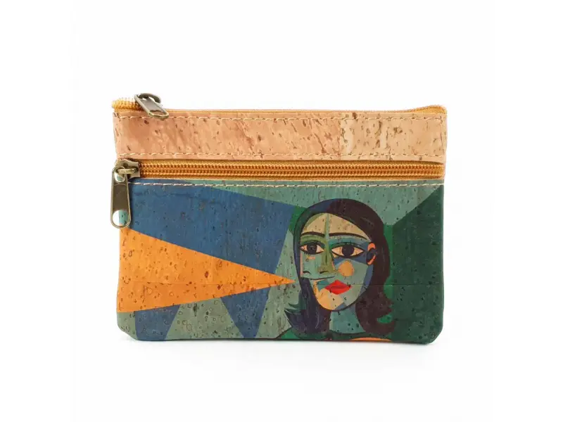Πορτοφόλι από φελλό για κέρματα - Picasso. Κομψό πορτοφόλι από οικολογικό υλικό, τύπου πορτοφολιού από φελλό. Γυναικείο βαμμένο πορτοφόλι για κέρματα με χώρο για χαρτονομίσματα και κέρματα.