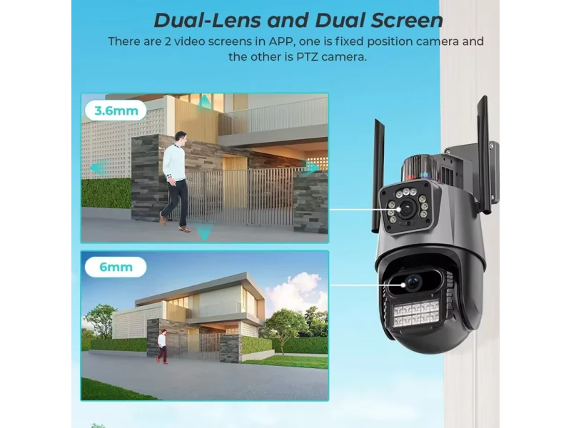 Περιστρεφόμενη διπλή αμφίδρομη κάμερα εξωτερικού χώρου WiFi 8MP με AI για καθημερινή και νυχτερινή ασφάλεια