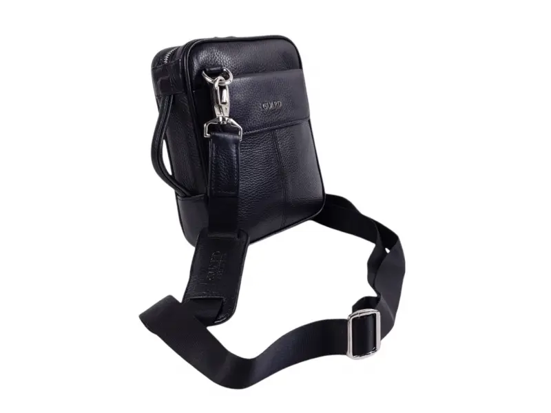Ποιοτική ανδρική τσάντα - Guard. Κομψή ανδρική τσάντα από γνήσιο δέρμα σε μαύρο χρώμα. Ανδρική τσάντα με άνετη διάταξη και μακριά ρυθμιζόμενη λαβή.