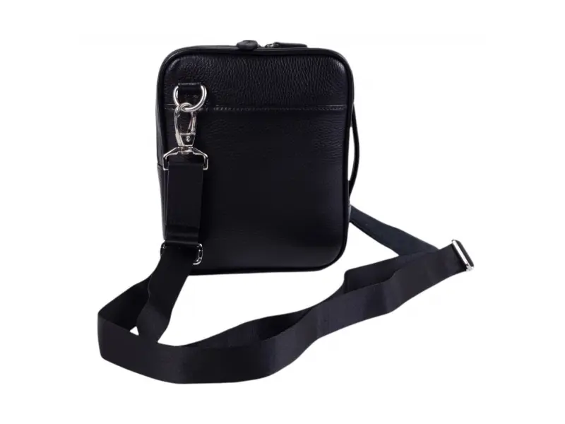 Ανδρική τσάντα από γνήσιο δέρμα υψηλής ποιότητας σε μαύρο χρώμα. Κομψή τσάντα με μία κύρια θήκη με φερμουάρ, μια μικρή εσωτερική τσέπη με φερμουάρ, μια μπροστινή τσέπη με μαγνητικό κλείσιμο. Άνετη τσάντα με λαβή για το χέρι και μακριά ρυθμιζόμενη λαβή.