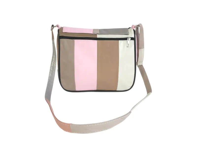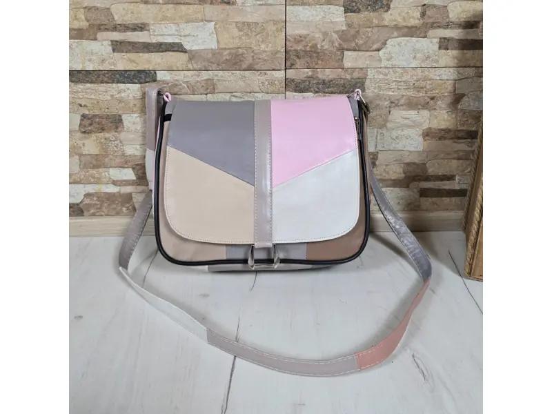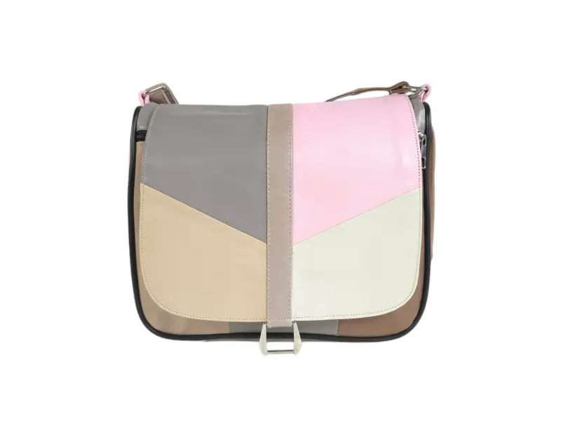 Πολύχρωμη τσάντα χειρός από γνήσιο δέρμα. Τσάντα χειρός με καπάκι με άνετες θήκες και μακριά ρυθμιζόμενη λαβή. Δερμάτινη τσάντα χειρός σε μειωμένη τιμή.