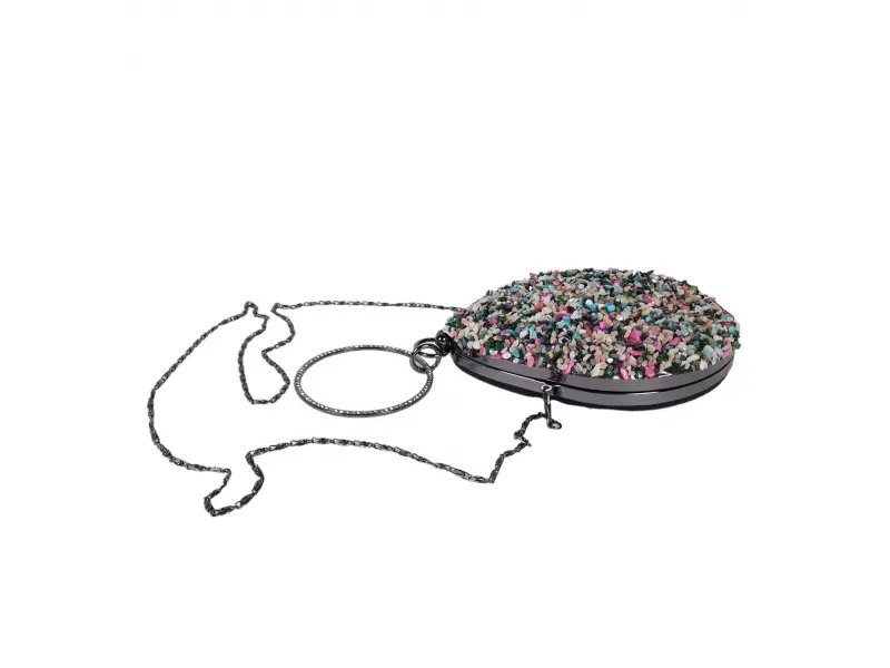 Πολύχρωμη επίσημη τσάντα - Επίσημη τσάντα χειρός με μία θήκη. - Άνοιγμα και κλείσιμο με μηχανισμό. - Μεταλλικό περίγραμμα. - Λαβή για μεταφορά στο χέρι. - Λαβή τύπου μακριάς αλυσίδας.