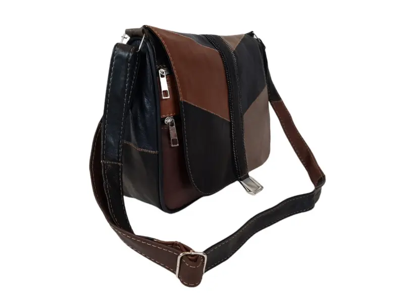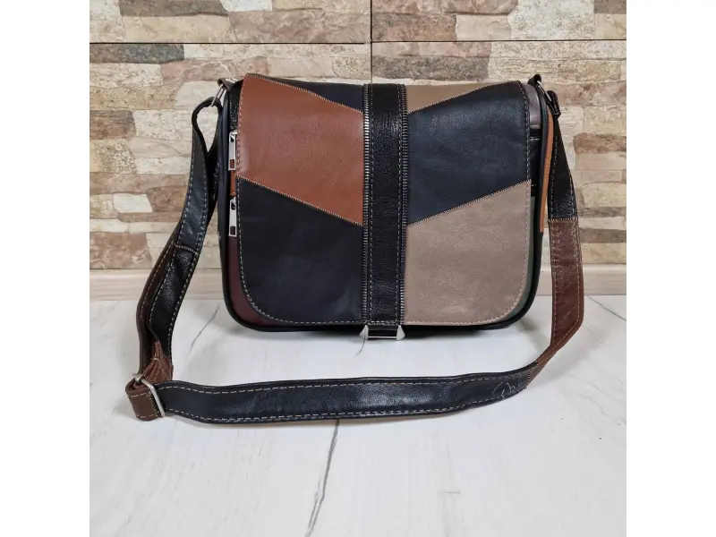 Γυναικεία τσάντα υψηλής ποιότητας από γνήσιο δέρμα αρνιού. Πολύχρωμη τσάντα με μία κύρια θήκη με φερμουάρ και μαγνητικό κλείσιμο, μία εσωτερική τσέπη με φερμουάρ, δύο μπροστινές τσέπες κάτω από το καπάκι με φερμουάρ και μία πίσω τσέπη με φερμουάρ. Άνετη τσάντα με μακριά ρυθμιζόμενη λαβή.