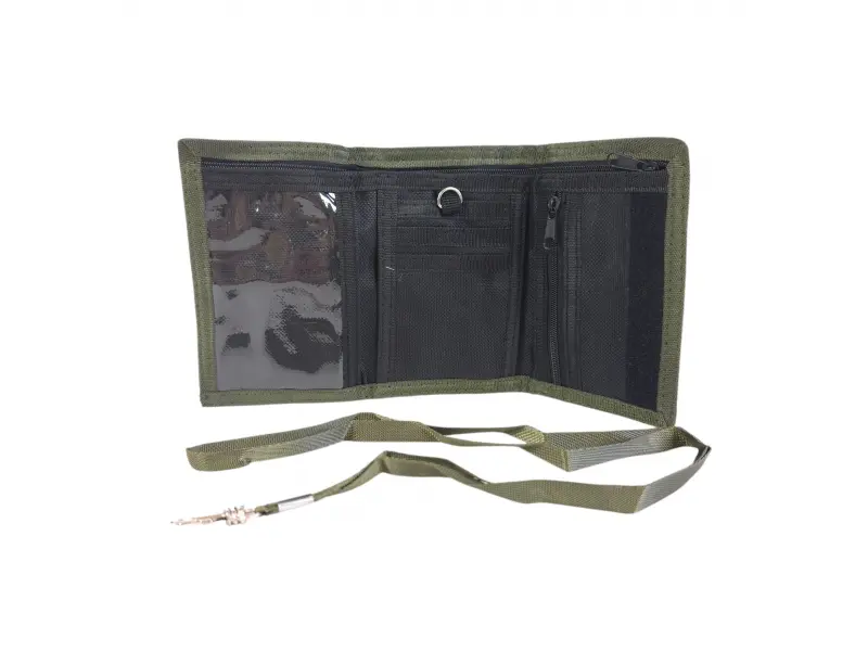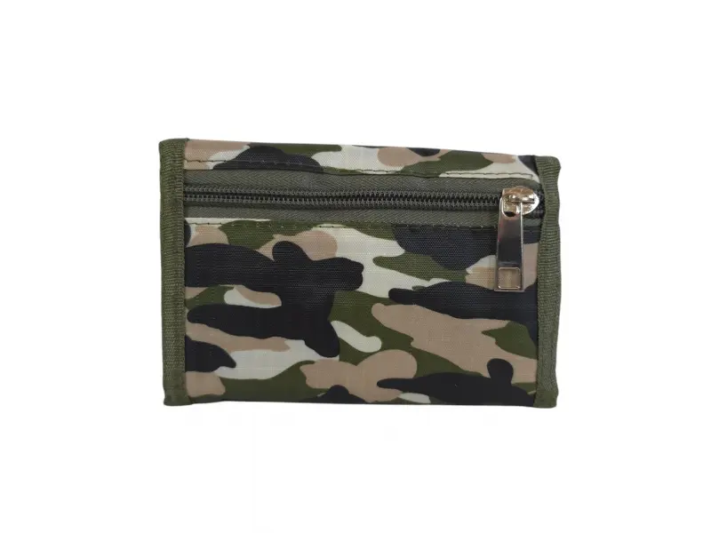 Πορτοφόλι καμουφλάζ με έμπλαστρο - Ανδρικό υφασμάτινο πορτοφόλι. - Θήκη για χαρτονομίσματα. Θήκη με φερμουάρ. - Θέσεις για κάρτες και προσωπικά έγγραφα. - Πορτοφόλι για κέρματα με φερμουάρ. - Ιμάντας μεταφοράς.