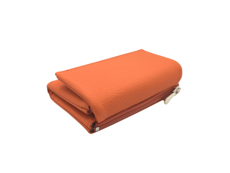 Γυναικεία τσάντα σε όμορφο πορτοκαλί χρώμα - Γυναικείο πορτοφόλι από οικολογικό δέρμα. - Μαγνητικό κλείσιμο. - Θήκες για κάρτες. - Θήκη για χαρτονομίσματα. - Τσέπη για κέρματα με φερμουάρ.