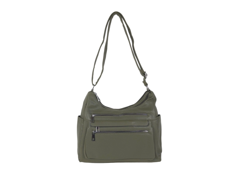 Γυναικεία τσάντα ώμου υψηλής ποιότητας - Τσάντα χειρός από οικολογικό δέρμα. - Δύο κύριες θήκες με φερμουάρ - Μικρή εσωτερική τσέπη με φερμουάρ. - Τρεις μπροστινές τσέπες με φερμουάρ. - Πίσω τσέπη με φερμουάρ. Δύο πλαϊνές τσέπες. - Μακριά ρυθμιζόμενη λαβή.