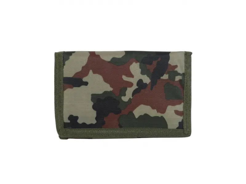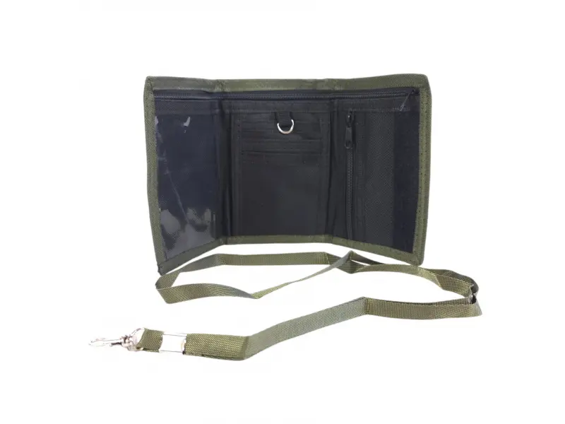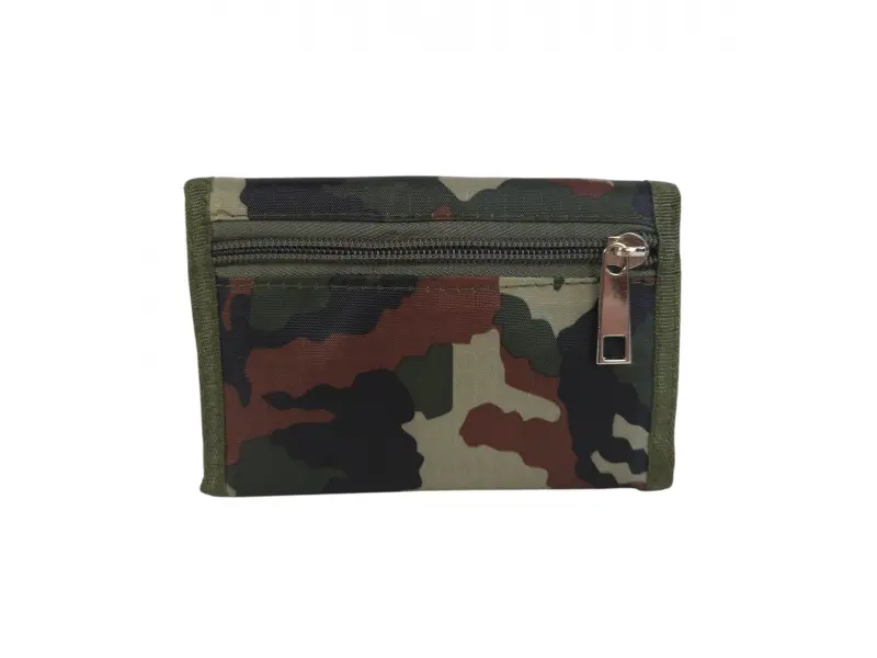 Πράσινο πορτοφόλι παραλλαγής με έμπλαστρο - Ανδρικό υφασμάτινο πορτοφόλι. - Θήκη για χαρτονομίσματα. Θήκη με φερμουάρ. - Θέσεις για κάρτες και προσωπικά έγγραφα. - Τσέπη για κέρματα με φερμουάρ. - Ιμάντας μεταφοράς.