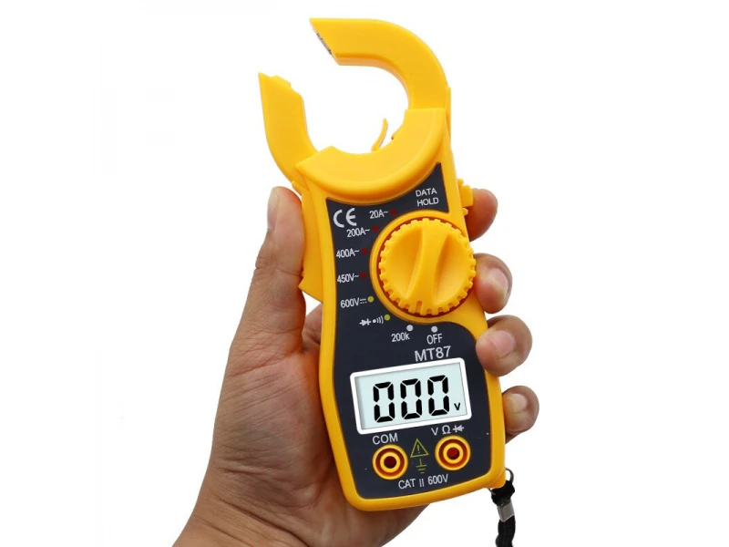 Πολύμετροι σφιγκτήρες MT87 Εύρος μέτρησης τάσης DC: 600V ±1% Εύρος μέτρησης τάσης AC: 450V ±1,2% Εύρος μέτρησης ρεύματος AC: 2/20/200/400A ±2,5% Εύρος μέτρησης αντίστασης: 200Kohm ±1% Τροφοδοτικό: (AAA) 1,5V - 2 τεμάχια - περιλαμβάνεται; Ψηφιακή οθόνη LCD: 3 χαρακτήρες, μέγιστος αριθμός: 1999; Διαθεσιμότητα δοκιμής διόδου, βομβητή και διατήρηση μετρήσεων Διατήρηση δεδομένων. Τροφοδοτικό: 2x1,5V (AAA) Διαστάσεις: 150x63x28mm