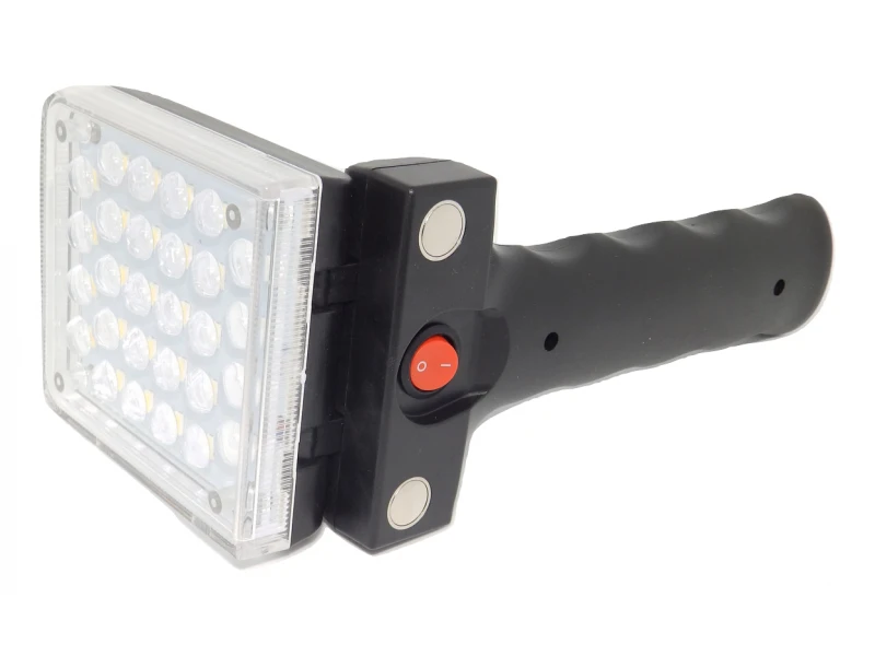 Πτυσσόμενο φωτιστικό εργασίας 28 LED - ZL-869-B Σύγχρονη αντικατάσταση της κινητής λάμπας εργασίας για εργασίες επισκευής. Το μοναδικό σε αυτό το μοντέλο είναι η αναδιπλούμενη σχεδίαση, που το κάνει αρκετά κινητό και επεκτείνει την εφαρμογή του. Το πάνελ φωτισμού μπορεί να διπλωθεί κατά 180°. Ελαφρύ σώμα από πλαστικό ABS με μαγνητικό κούμπωμα. Πτυσσόμενο άγκιστρο. Η ενεργοποίηση γίνεται με ένα κουμπί στη λαβή. Λειτουργεί με ενσωματωμένη μπαταρία, η οποία φορτίζεται μέσω του καλωδίου USB που περιλαμβάνεται ή απευθείας από τον φορτιστή τηλεφώνου microUSB. Διάφανη ασφάλεια από πλεξιγκλάς για φωτισμό εντόμων, υγρασίας και ρύπανσης. Μια λύση για οικονομικό και έντονο φωτισμό. Στο σετ: Λάμπα ZL-869-B Καλώδιο φορτιστή 1 τεμ Κουτί συσκευασίας.