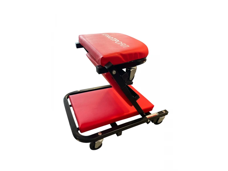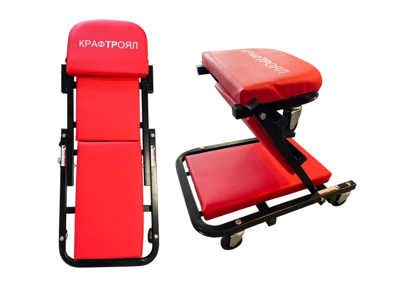 Πτυσσόμενος πάγκος/καρέκλα σέρβις KraftRoyal 🔧🪑 Αυτή η πολυθρόνα KraftRoyal για όλες τις χρήσεις μετατρέπεται εύκολα από πάγκο εργασίας σε μια άνετη καρέκλα, κατάλληλη για συνεργεία αυτοκινήτων, γκαράζ και εργαστήρια χόμπι. Ένας στιβαρός μεταλλικός σκελετός και ποιοτικοί τροχοί εξασφαλίζουν σταθερότητα και κινητικότητα σε όλες τις συνθήκες. Κύρια χαρακτηριστικά 🎯 Σχεδιασμός 2 σε 1: γρήγορη αλλαγή από ξαπλώστρα σε καρέκλα και πίσω Μεταλλικό πλαίσιο: Προφίλ 25×25 mm, πάχος 1,0 mm για μεγάλη διάρκεια ζωής Ρόδες 2,5": 7 στιβαροί περιστρεφόμενοι τροχοί για εύκολη κίνηση Ικανότητα φορτίου: έως 150 kg ως ξαπλώστρα και έως 130 kg ως καρέκλα Διαστάσεις και βάρος 📐 Κρεβάτι (Μ×Π×Υ): 1025 × 405 × 160 mm Καρέκλα (Μ×Π×Υ): 555 × 405 × 480 mm Βάρος: 7 κιλά Πλεονεκτήματα 🌟 Ευελιξία: ένα εργαλείο αντικαθιστά δύο - έναν πάγκο και μια καρέκλα Άνεση: μαλακό μαξιλαράκι στήριξης για την πλάτη και το κεφάλι Δυνατότητα διέλευσης: οι τροχοί εξασφαλίζουν ομαλή κίνηση σε οποιαδήποτε επιφάνεια Στιβαρή κατασκευή: ανθεκτική στη διάβρωση και τις μηχανικές καταπονήσεις