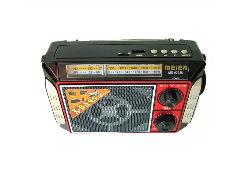 Ραδιόφωνο με ρετρό σχεδίαση με bluetooth, FM/AM/SW, Mp3/USB/microSD/AUX και επαναφορτιζόμενη μπαταρία - MEIER MD-9393BT Συμπαγής και κομψός φορητός ραδιοφωνικός δέκτης, ισχυρό ραδιόφωνο FM AM και SW3, Mp3 με θύρα USB, είσοδος AUX, MP3 Player, επαναφορτιζόμενη μπαταρία, κάρτα μνήμης microSD για τηλέφωνο, tablet, φορητό υπολογιστή, smartphone MEIER MD-9393BT Ρετρό σχέδιο Μάρκα: MEIER Μοντέλο: MD-9393BT Υλικό: πλαστικό ABS Χρώμα θήκης: όπως εικόνα Το ραδιόφωνο υποστηρίζει συχνότητες FM/AM/SW Bluetooth - παίζει από εξωτερικές συσκευές μέσω σύνδεσης bluetooth Υποδοχή USB, TF (microSD) και είσοδος AUX με υποδοχή 3,5 mm Αναπαράγει αρχεία MP3 από κάρτα MicroSD, USB FLASH DRIVE Περιστροφικό πόμολο για on/off και ένταση Περιστροφικό κουμπί αναζήτησης σταθμού Εναλλαγή για τις διαφορετικές λειτουργίες Βολική πτυσσόμενη λαβή για μεταφορά Κεραία Ενσωματωμένη επαναφορτιζόμενη μπαταρία Δυνατότητα εργασίας με 2 μπαταρίες 1.5V R20, Δ Τεχνικές προδιαγραφές: Φόρτιση απευθείας από το δίκτυο - 220V/ 50Hz Συχνότητες λήψης: AM: 522 - 1620 KHz FM: 87 - 108 MHz SW: 5,9 - 18MHz