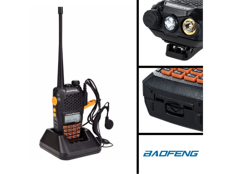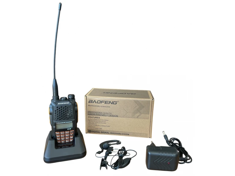 Ο ραδιοφωνικός σταθμός είναι εξοπλισμένος με μπαταρία λιθίου-ιόντων χωρητικότητας 5000mAh και φορτιστή, καθώς και άνετο hands-free. Μπορεί να χρησιμοποιηθεί σε ευρύ εύρος θερμοκρασιών – από -30 έως +60 βαθμούς.Είναι εύκολος στη χρήση, ακόμη και για αρχάριους. Είναι μια καλή επιλογή για άτομα των οποίων η εργασία ή το χόμπι απαιτούν τη χρήση τέτοιων συσκευών – κυνηγοί, ψαράδες, κατασκηνωτές, ορειβάτες, σκιέρ, ραδιοερασιτέχνες, εκδρομείς, φύλακες, υπάλληλοι σε εμπορικά κέντρα ή malls και άλλοι.Το σετ περιλαμβάνει:Ραδιοφωνικό σταθμό UV-6R (VHF 136-174Mhz UHF 400-520Mhz)Επαναφορτιζόμενη μπαταρία Li-ion 7.4V 5000mAhΚεραία 136-174/400-520MhzΚλιπ για ζώνηΟδηγίες χρήσηςΕπιδρομικός φορτιστής (100V ~ 240V)PTT ακουστικά με μικρόφωνο τύπου hands-freeΧαρακτηριστικά:Συχνότητα: 136-174 / 400-520 MHzΣυχνότητες VHF/UHF με διπλή ραδιοφωνική μετάδοση 136-174/400-520MhzDual-Band DisplayDual Freq. Display Dual-StandbyΈξοδος ισχύος: 7 WΑριθμός καναλιών: 128 (50 CTCSS και 104 CDCSS)LED φακός – LED FlashlightΜεγάλη οθόνη LCDΕναλλαγή ισχύος RF (High/Low)Εναλλαγή μεταξύ Υψηλών και Χαμηλών ραδιοφωνικών συχνοτήτων 25KHz/12.5KHzSOS συναγερμόςΣυναγερμός για χαμηλό επίπεδο μπαταρίαςΛειτουργία εξοικονόμησης ενέργειαςΧρονοδιακόπτης time-outΚλείδωμα πληκτρολογίουMonitor ChannelΒήμα για κάθε επόμενο κανάλι: 2.5/5/6.25/10/12.5/25KHzΆκουσμα συγκεκριμένου καναλιούROGER SET