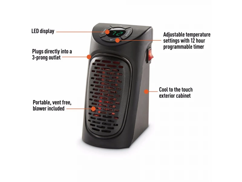 Το Handy Heater θα σας κρατήσει ζεστούς αυτή τη στιγμή απλά συνδέοντάς το χωρίς να πιάνει χώρο! Επιπλέον, το Handy Heater είναι ενεργειακά αποδοτικό και αξιόπιστο, καταναλώνει μικρή ποσότητα ηλεκτρικής ενέργειας και σίγουρα εξοικονομεί στους λογαριασμούς θέρμανσης και ρεύματος. Ταυτόχρονα είναι αρκετά ισχυρό για να θερμάνει ένα κρύο δωμάτιο έως 20-22m2. Μην παγώνετε, αλλά ζεστάνετε εύκολα το δωμάτιο με το Handy Heather! Απλώς πάρτε το, συνδέστε το, ρυθμίστε τον θερμοστάτη (+/-) και θερμάνετε κάθε δωμάτιο στο σπίτι και τον χώρο εργασίας σας! Κατάλληλο για σαλόνι, υπνοδωμάτια, παιδικά δωμάτια, μπάνιο και τουαλέτα, γραφείο, υπόγειο ή γκαράζ, το Handy Heather είναι πάντα στο χέρι! Ασφαλής συσκευή χωρίς να κάνετε μεγάλη επένδυση. Τα κρύα, παγωμένα δωμάτια γίνονται ζεστά και άνετα και το Handy Heather καταναλώνει μόνο 0,3 κιλοβάτ, που είναι πολλές φορές λιγότερο από ένα συμβατικό κλιματιστικό με ανεμιστήρα ή inverter. Το Handy Heather έχει: Αξιόπιστο κεραμικό θερμαντικό στοιχείο Πλαστικό κουτί που δεν θερμαίνεται. Αυτόματο κλείσιμο. Ψηφιακή οθόνη Ρύθμιση θερμοκρασίας: Θερμοστάτης 60 F - 90 F / 15 C - 33 C / Συμπαγές και εύκολο στη μεταφορά Συνδέεται απευθείας στην πρίζα / χωρίς καλώδιο / Χρονοδιακόπτης - προγραμματιζόμενος έως και 12 ώρες Δύο ταχύτητες ανεμιστήρα - χαμηλή και υψηλή Ισχύς: 400W Οικονομικό 0,4KV / την ώρα στους 0 βαθμούς και 0,26 KV / την ώρα στους 25 βαθμούς στο δωμάτιο - ρεύμα 220 Volt. Ενσωματωμένος κεραμικός θερμαντήρας και χρονοδιακόπτης απενεργοποίησης για παράδειγμα μετά από 1,2, 3 ώρες αν θέλετε. Συσκευή χωρίς καλώδιο - απλώς συνδέστε και ρυθμίστε τους επιθυμητούς βαθμούς από 15 έως 32, όταν η συσκευή φτάσει στην επιθυμητή θερμοκρασία θα σβήσει. Το βύσμα του περιστρέφεται για εύκολη σύνδεση για κάθετη ή οριζόντια επαφή.