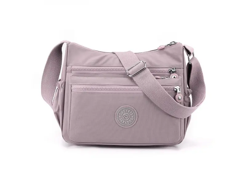 Γυναικεία τσάντα χειρός στο χρώμα των τριαντάφυλλων στάχτης - Γυναικεία τσάντα χειρός από ύφασμα. - Μία κύρια θήκη με φερμουάρ. - Τρεις μπροστινές τσέπες με φερμουάρ. - Πίσω τσέπη με φερμουάρ. Δύο πλαϊνές τσέπες. - Μικρή εσωτερική τσέπη με φερμουάρ. - Θήκη για τηλέφωνο και έγγραφα. - Ρυθμιζόμενη, μακριά λαβή.