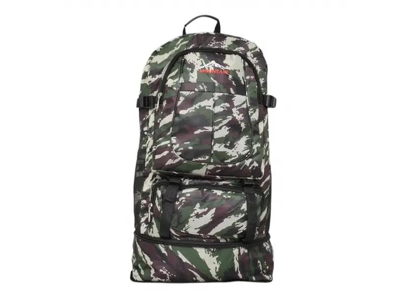 Μεγάλο σακίδιο πεζοπορίας κατασκευασμένο από ποιοτικό ύφασμα. Ανδρικό σακίδιο πλάτης με ρυθμιζόμενο μέγεθος και φερμουάρ. Σακίδιο παραλλαγής κατάλληλο για βουνά και πεζοπορία.